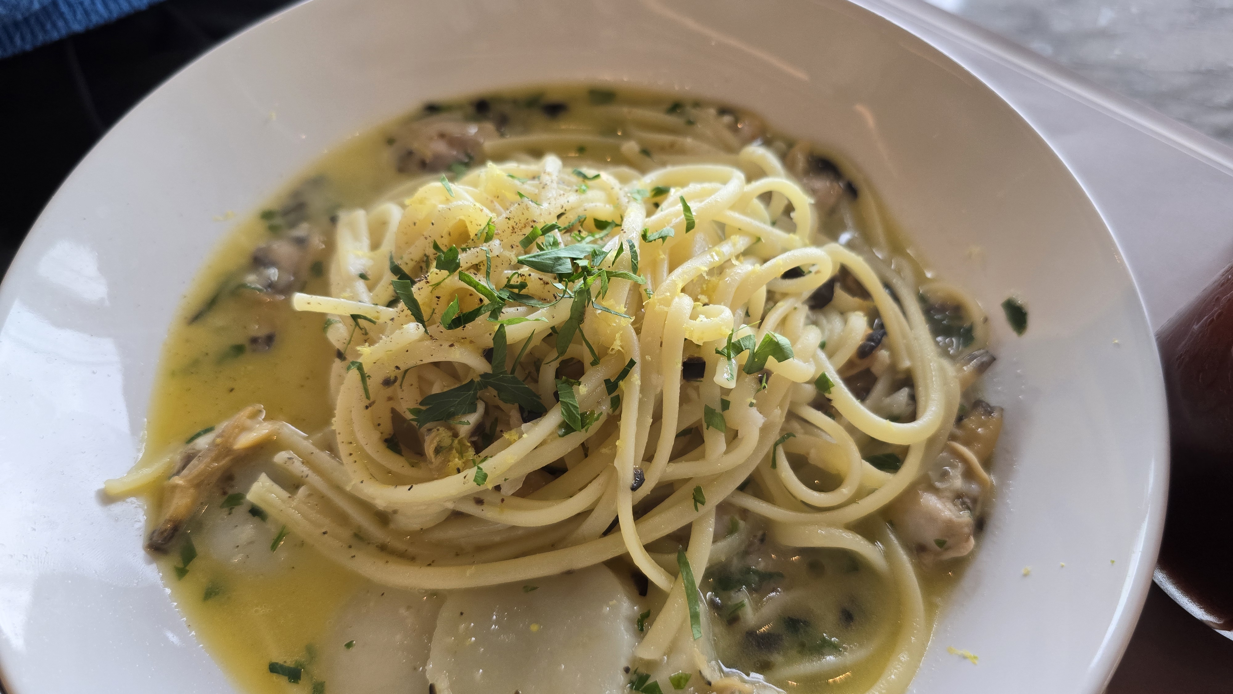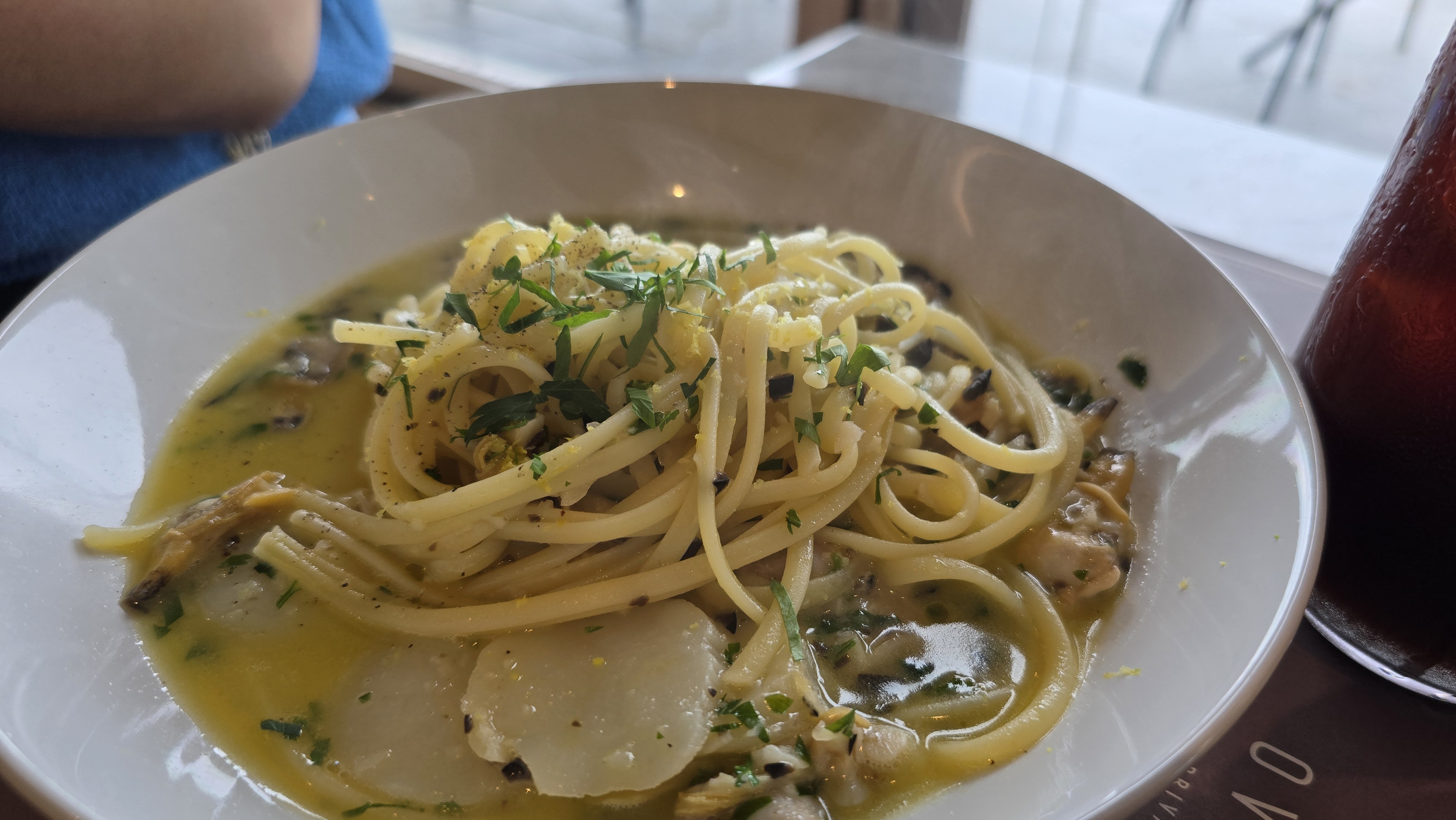 면이 일반 파스타 면이 아니었어요. 쫄깃하고 너무 맛있었습니다. 오일 소스도 맛있어서 숟가락으로 싹싹 긁어먹었어요. 오일파스타 좋아하시는 분 꼭 드세요!
